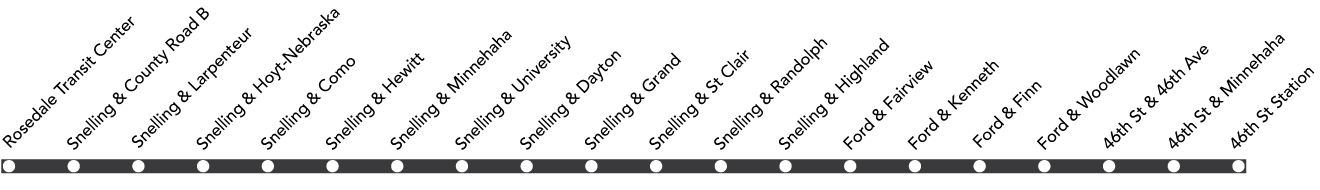> 61 - serves downtown Minneapolis, E. Hennepin Avenue, UPS, Larpenteur Avenue, Arcade Street, downtown St. Paul